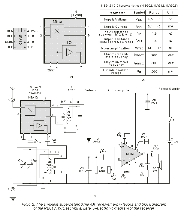 local oscillator NE612, pin 1 is RF in from the antenna, this