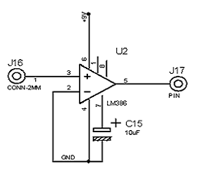 fed into the audio amplifier IC LM386 on pin 2, the output